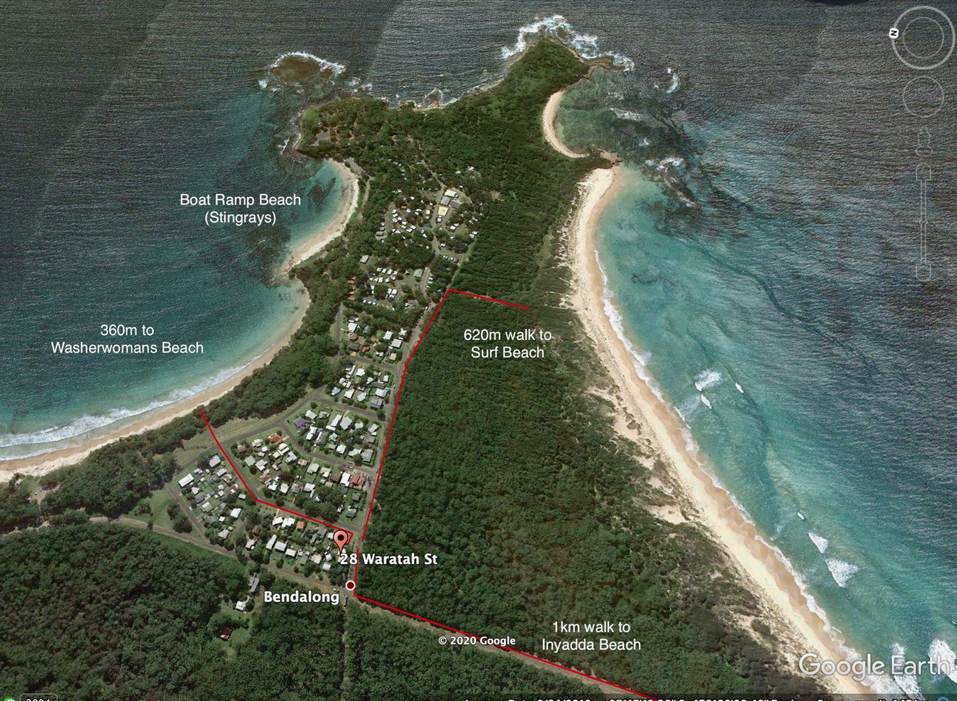 Bendalong is 20 minutes from Milton/Ulladulla. 45 Mins from Nowra. 2.5 hrs from Sydney or Canberra.
