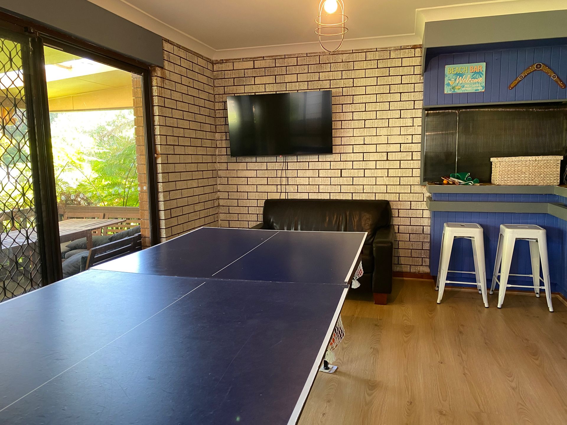 Bottom level has a bedroom, bathroom and laundry, games room and undercover BBQ area.