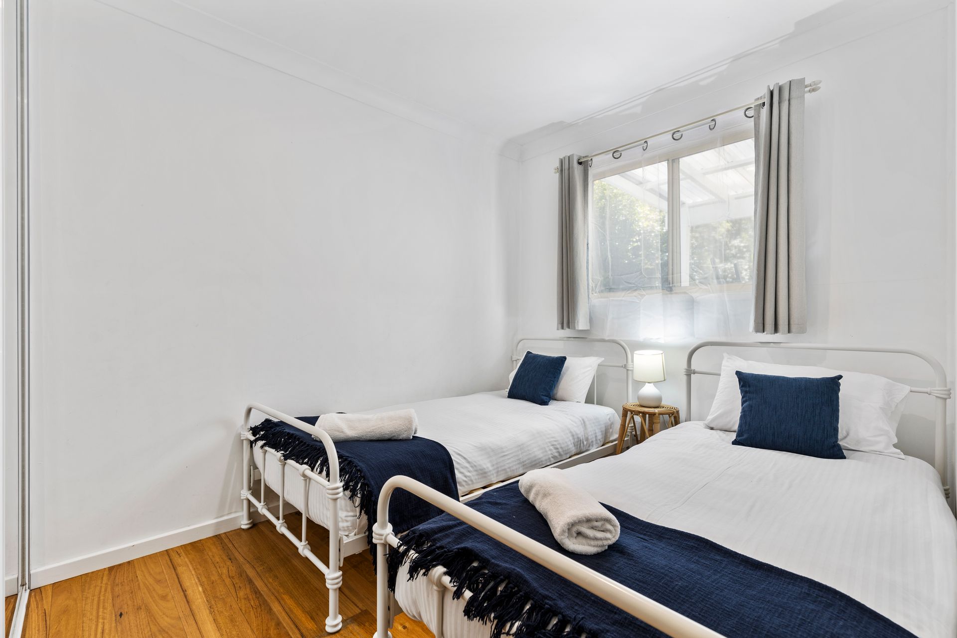 The main bedroom has a queen bed and the second bedroom has two single beds both have built in wardrobes.