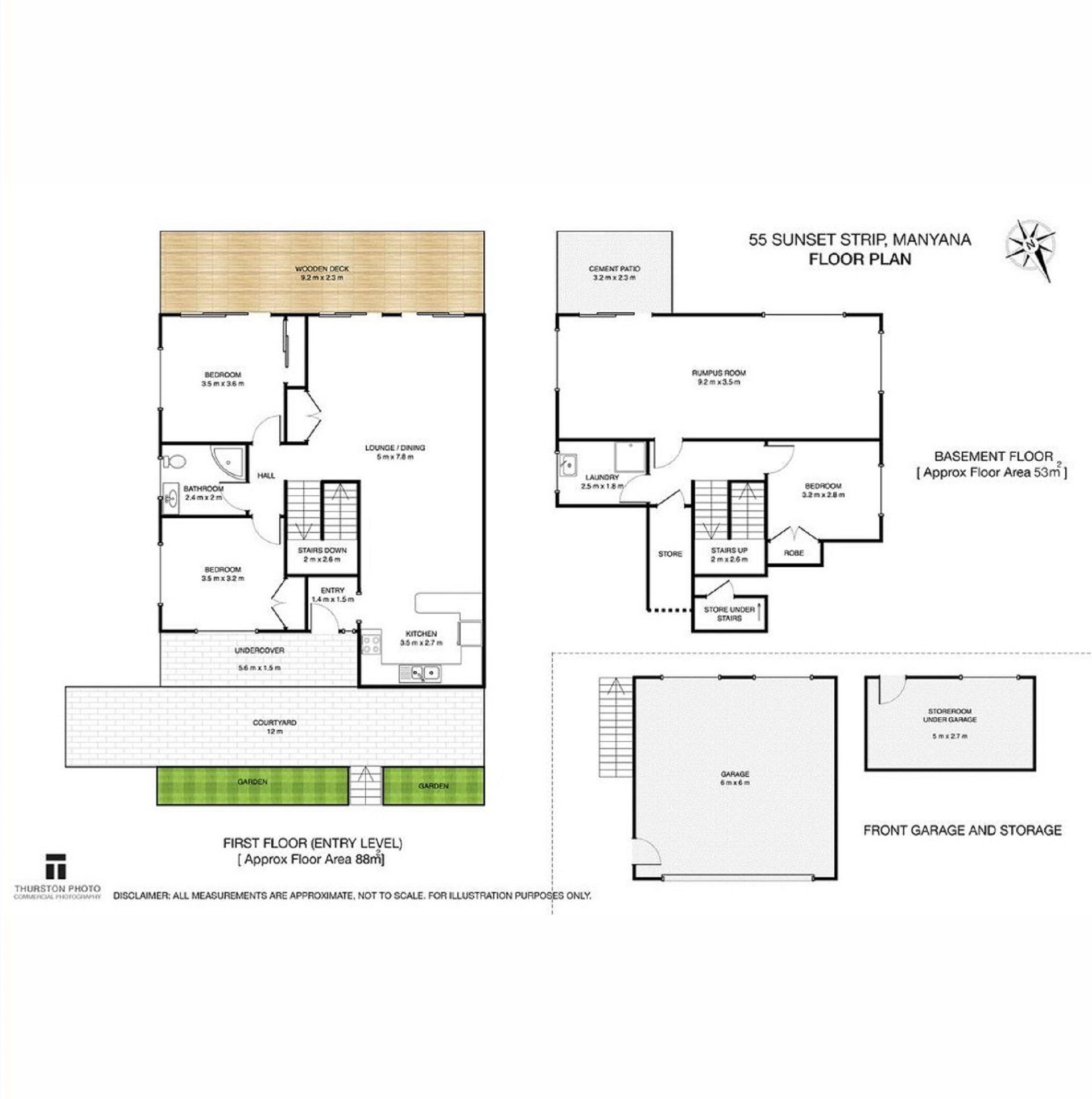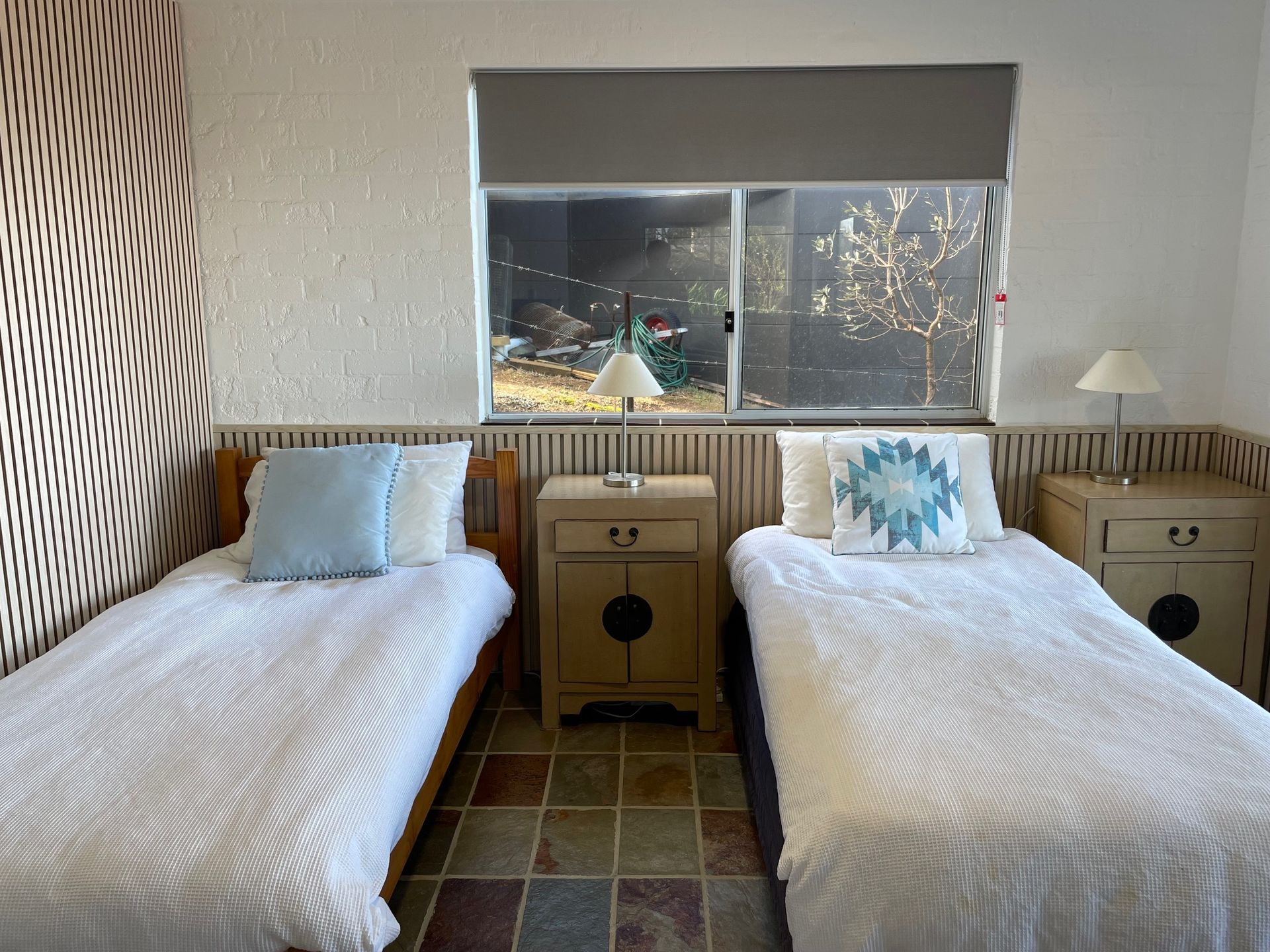 Double garage for secure parking and storing bikes and surf equipment.