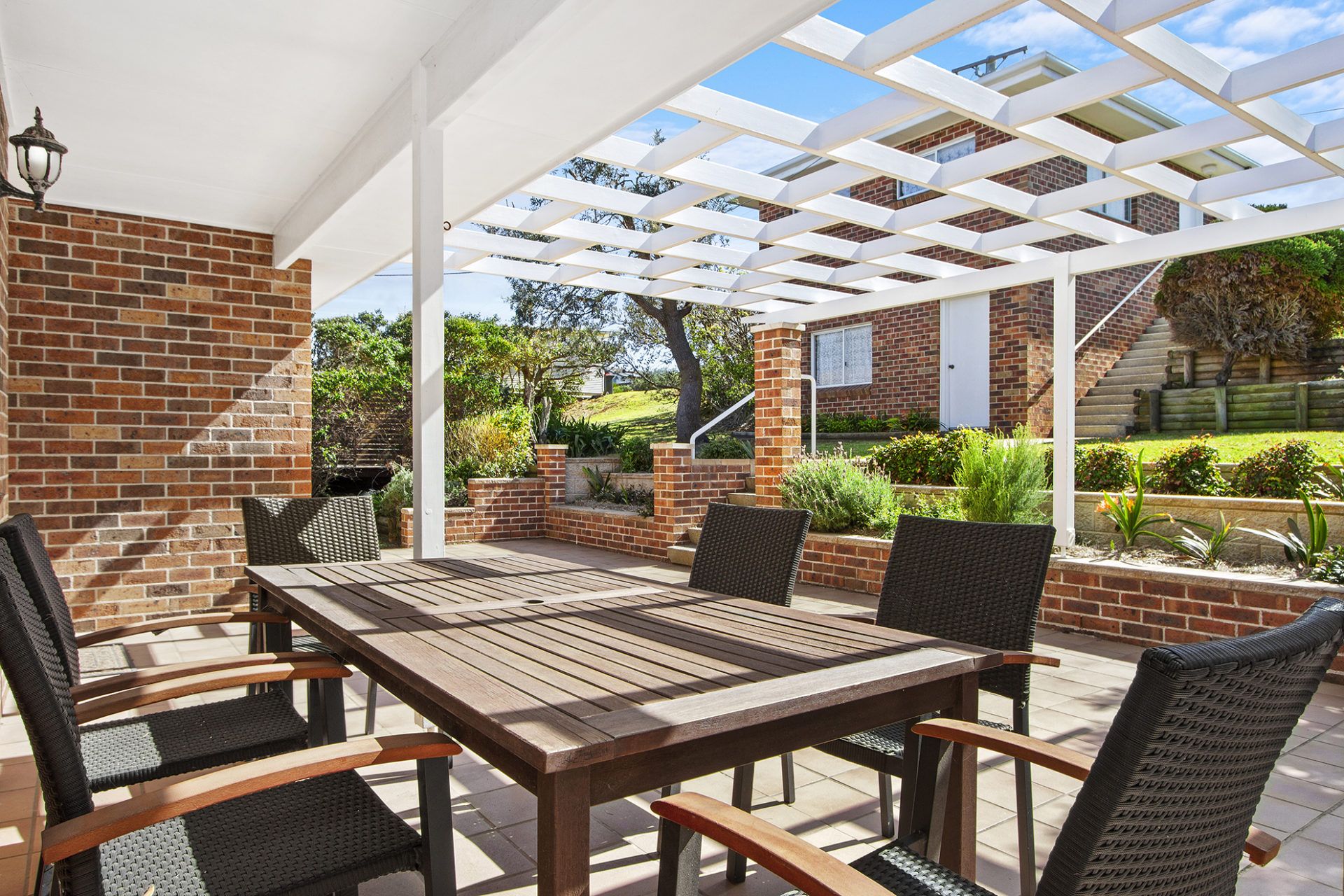 Downstairs terrace with dining table