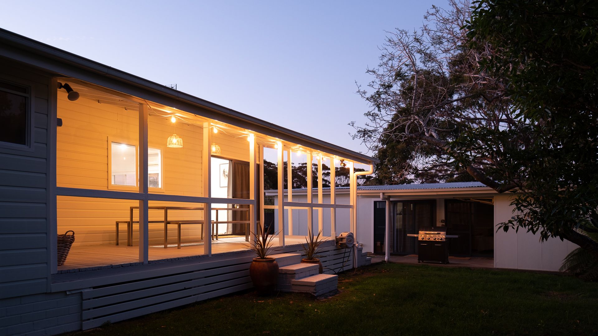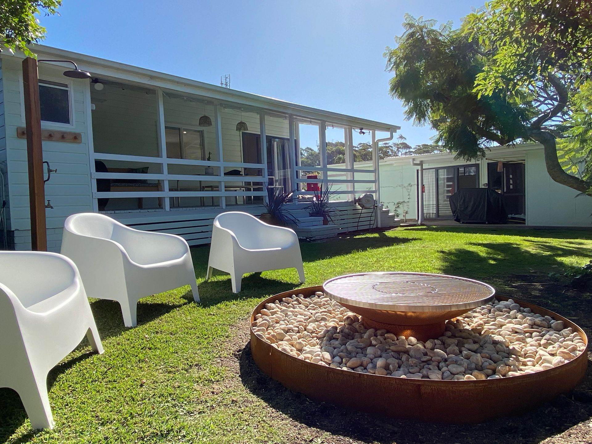 With its relaxing coastal style, the house is perfect for couples or a family get away. The home has a beautifully renovated interior and plenty of inside and outside entertaining and relaxation areas with additional fire pit with stainless steel grill and a hot and cold outdoor shower.