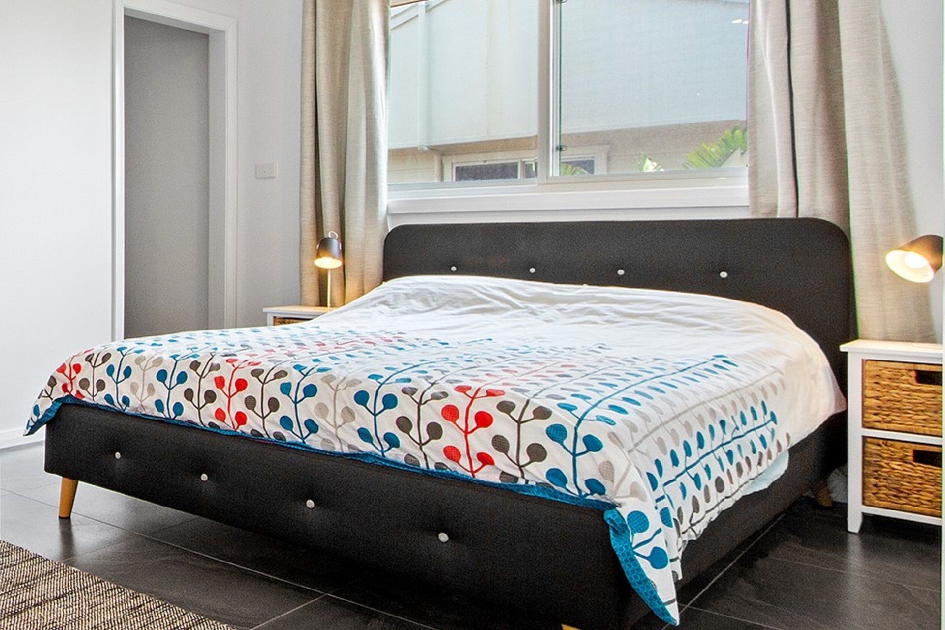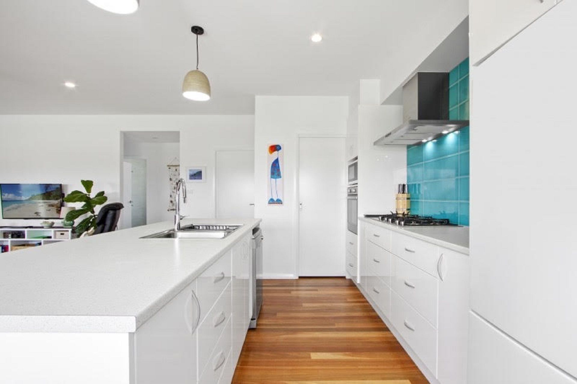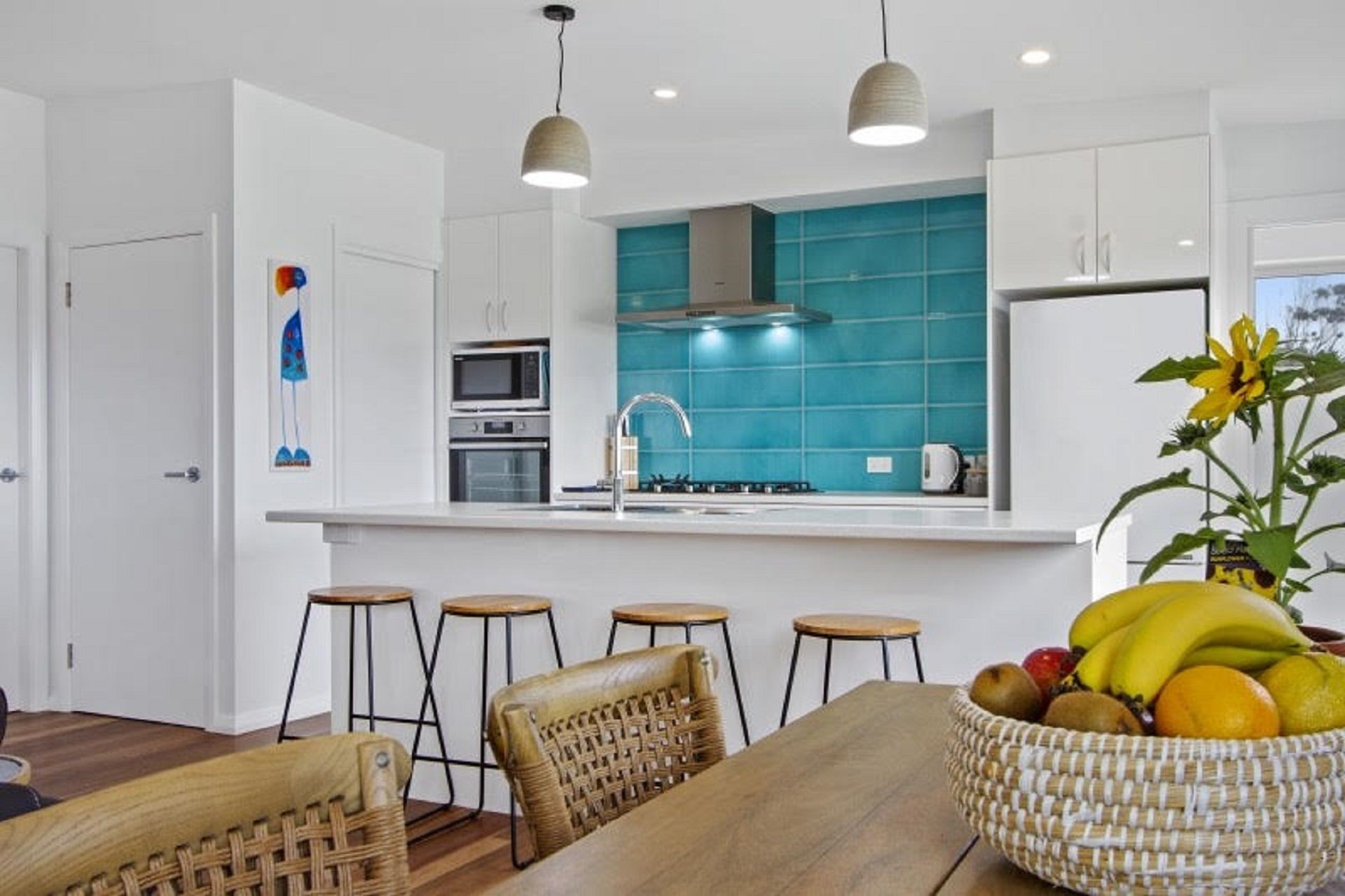 The kitchen is fully equipped with cooking facilities, microwave, dishwasher and coffee plunger.