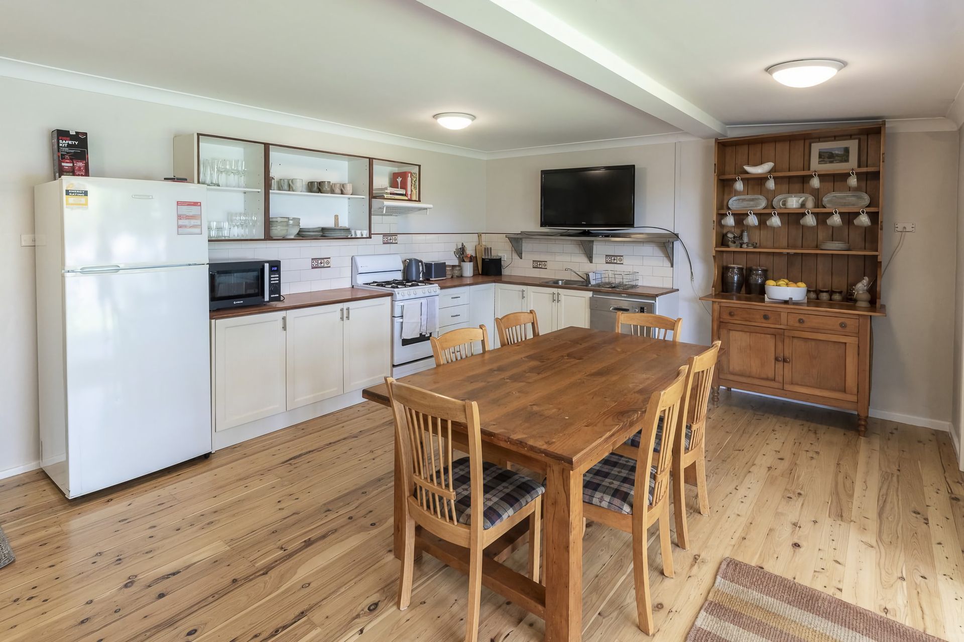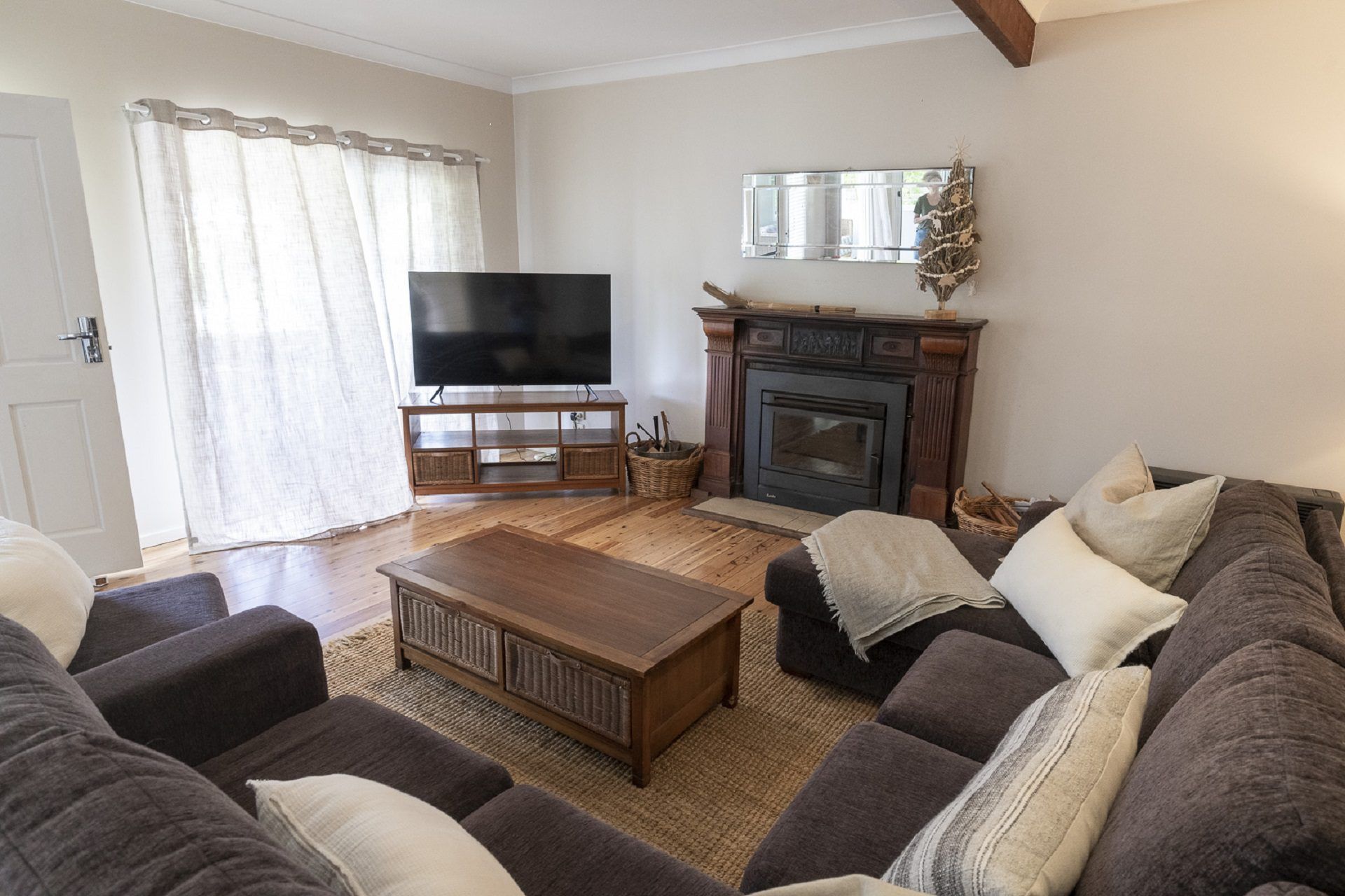 The lounge room is quite spacious and has a slow combustion fire, plush modular sofa, reverse cycle air conditioning and a smart TV, inviting you to relax and unwind.