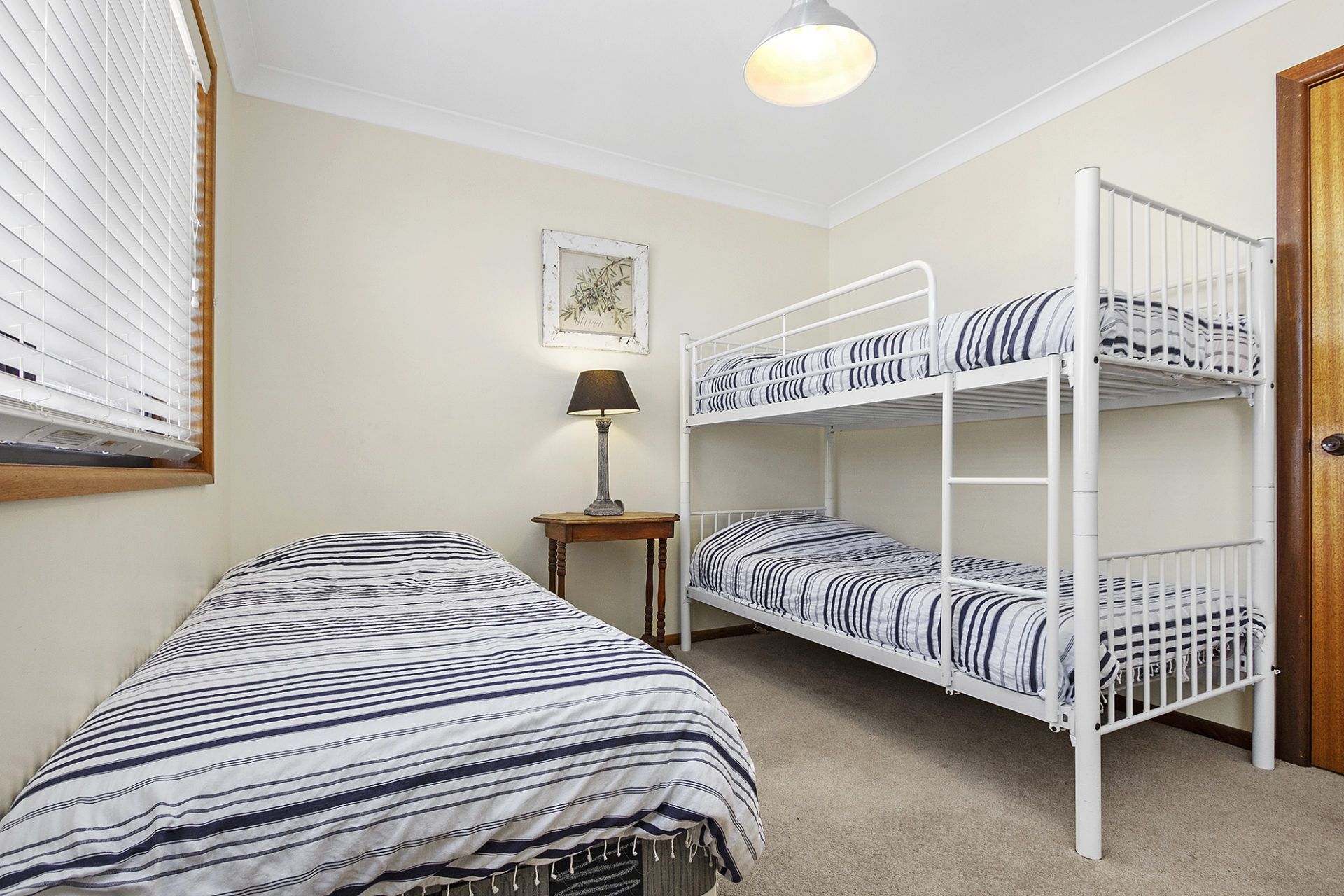 There are three bedrooms two of which have queen beds and the third with a bunk and a single.