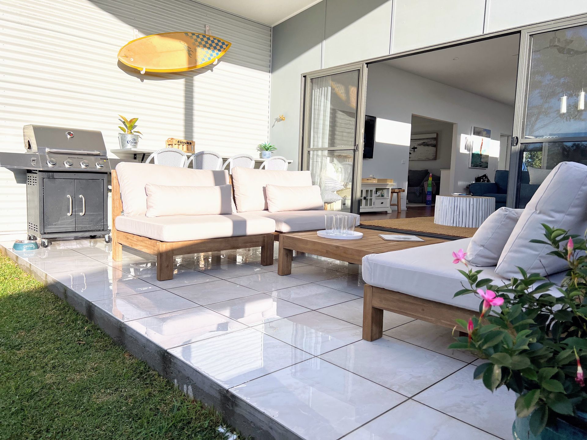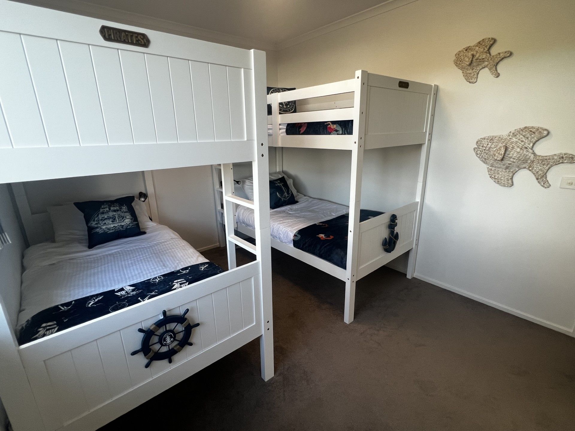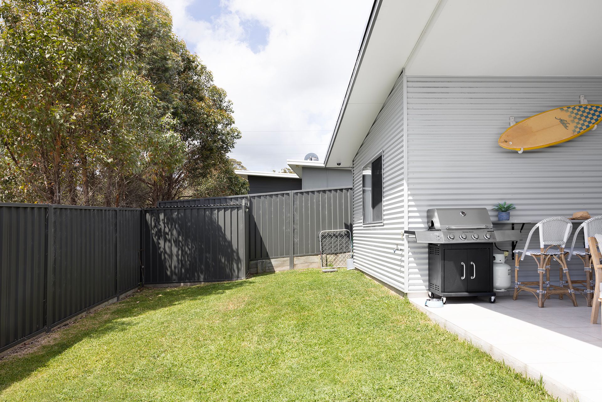 Bright, and modern 3-bedroom, 2-bathroom home that embodies a relaxed coastal ambiance. Step into the beautifully designed space, featuring an open-plan air-conditioned kitchen, dining, and living room adorned with modern furnishings and equipped with everything you need. The seamless flow extends to the spacious alfresco area, where you can savour a delicious BBQ dinner or unwind with a glass of wine while the kids and furry friends play in the fully fenced grass area. Additionally, Seagrass offers a media/toy room, perfect for families to spread out and enjoy entertainment with two TVs, an abundance of games, and beach toys, all for a cozy evening. Discover the perfect blend of comfort, style, and family-friendly features at Seagrass.