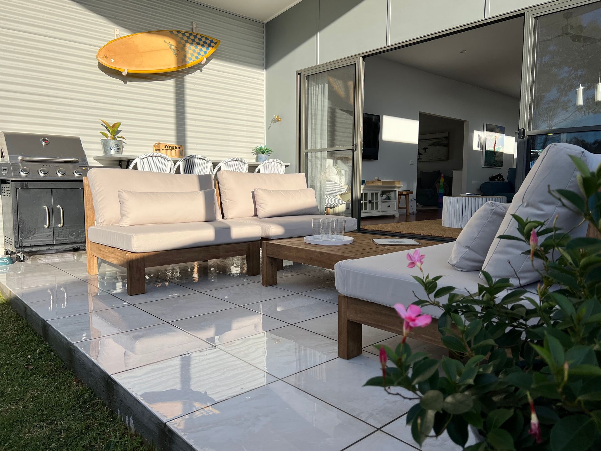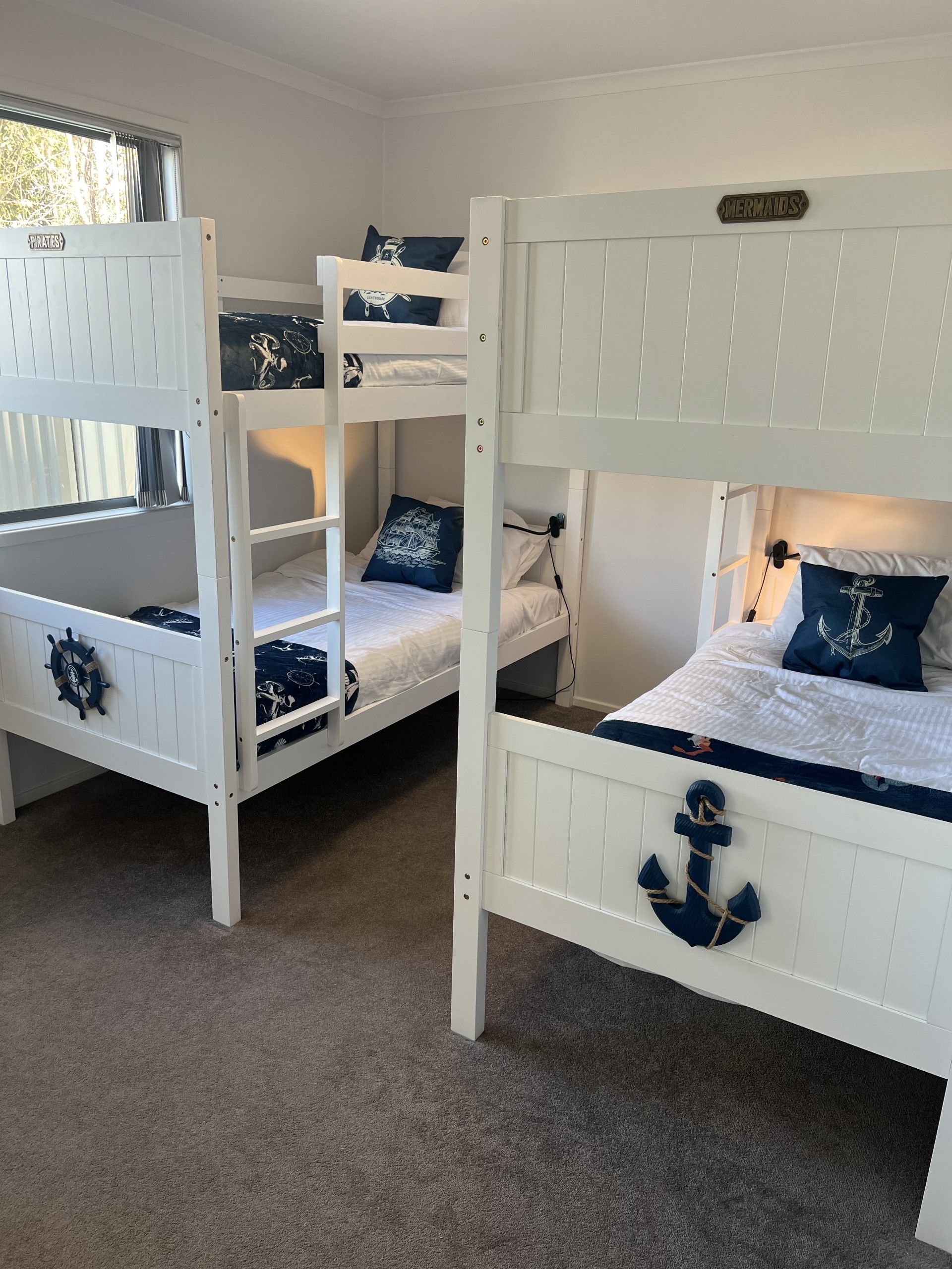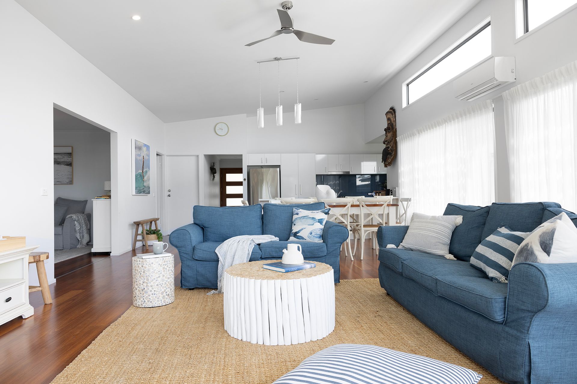 Bright, and modern 3-bedroom, 2-bathroom home that embodies a relaxed coastal ambiance. Step into the beautifully designed space, featuring an open-plan air-conditioned kitchen, dining, and living room adorned with modern furnishings and equipped with everything you need. The seamless flow extends to the spacious alfresco area, where you can savour a delicious BBQ dinner or unwind with a glass of wine while the kids and furry friends play in the fully fenced grass area. Additionally, Seagrass offers a media/toy room, perfect for families to spread out and enjoy entertainment with two TVs, an abundance of games, and beach toys, all for a cozy evening. Discover the perfect blend of comfort, style, and family-friendly features at Seagrass.