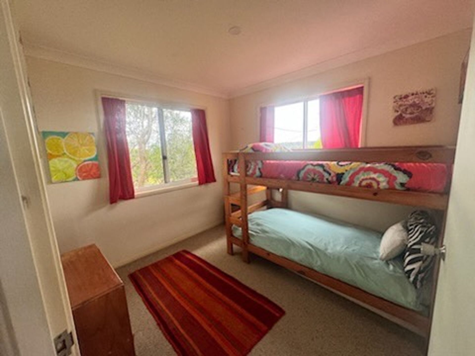 Sleeping up to 6, Southern Comfort has 3 bedrooms; 2 with Queen beds and 1 with a set of bunk beds.