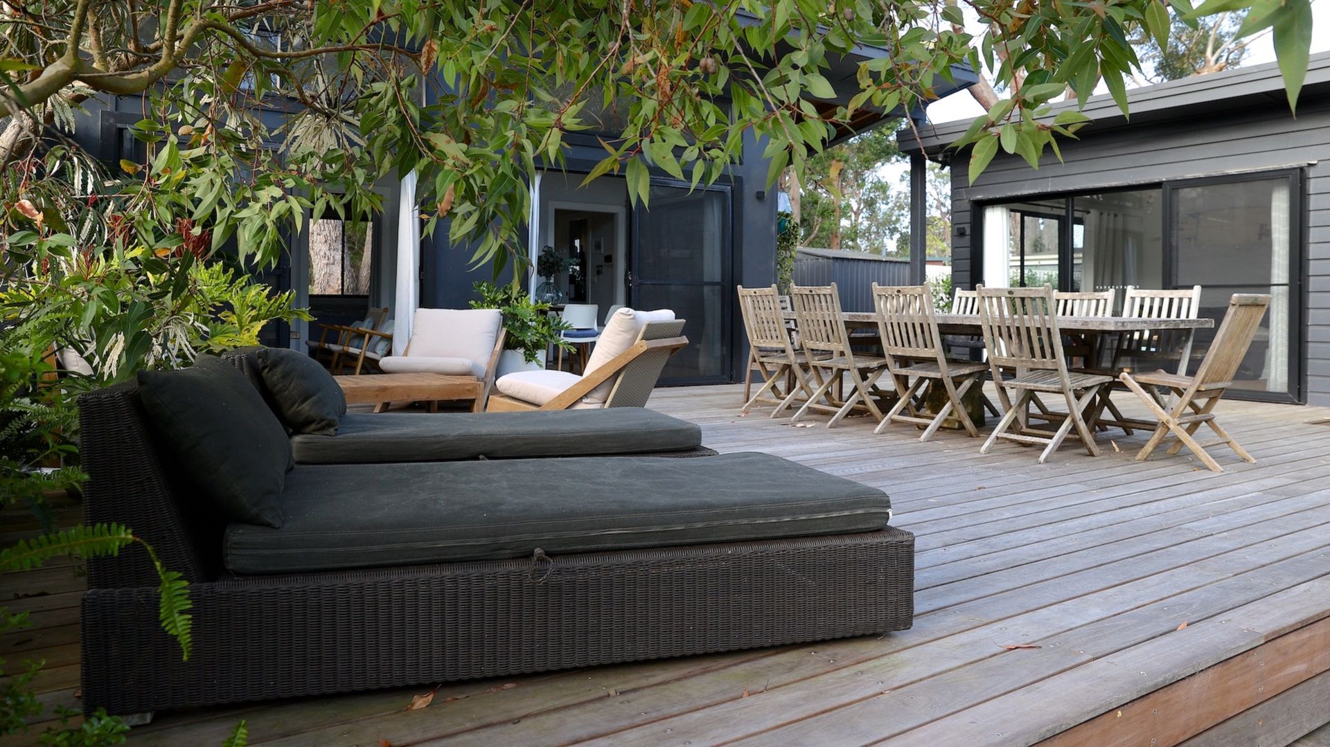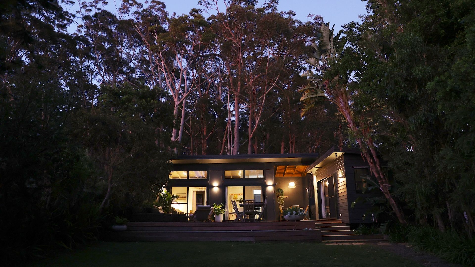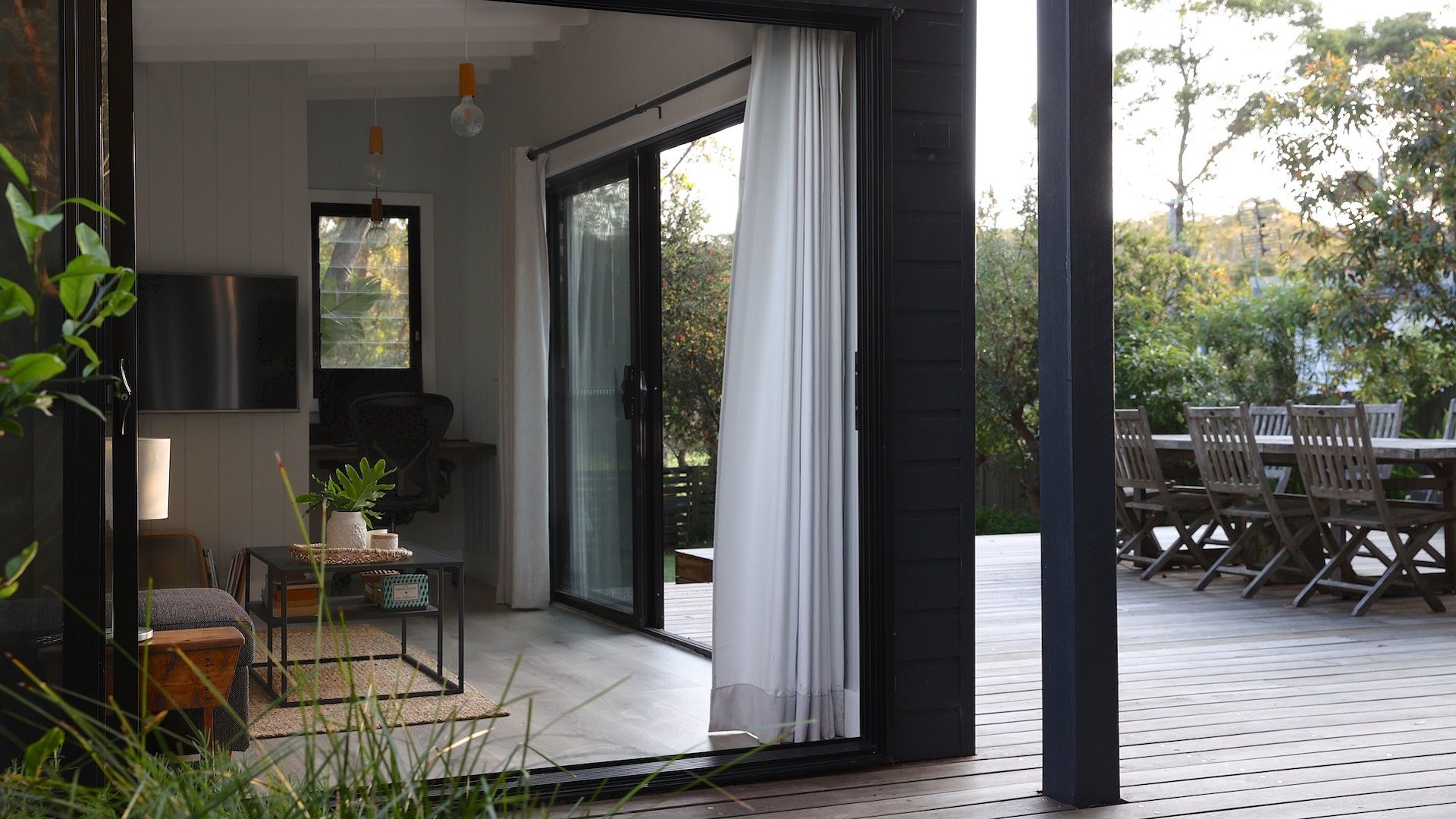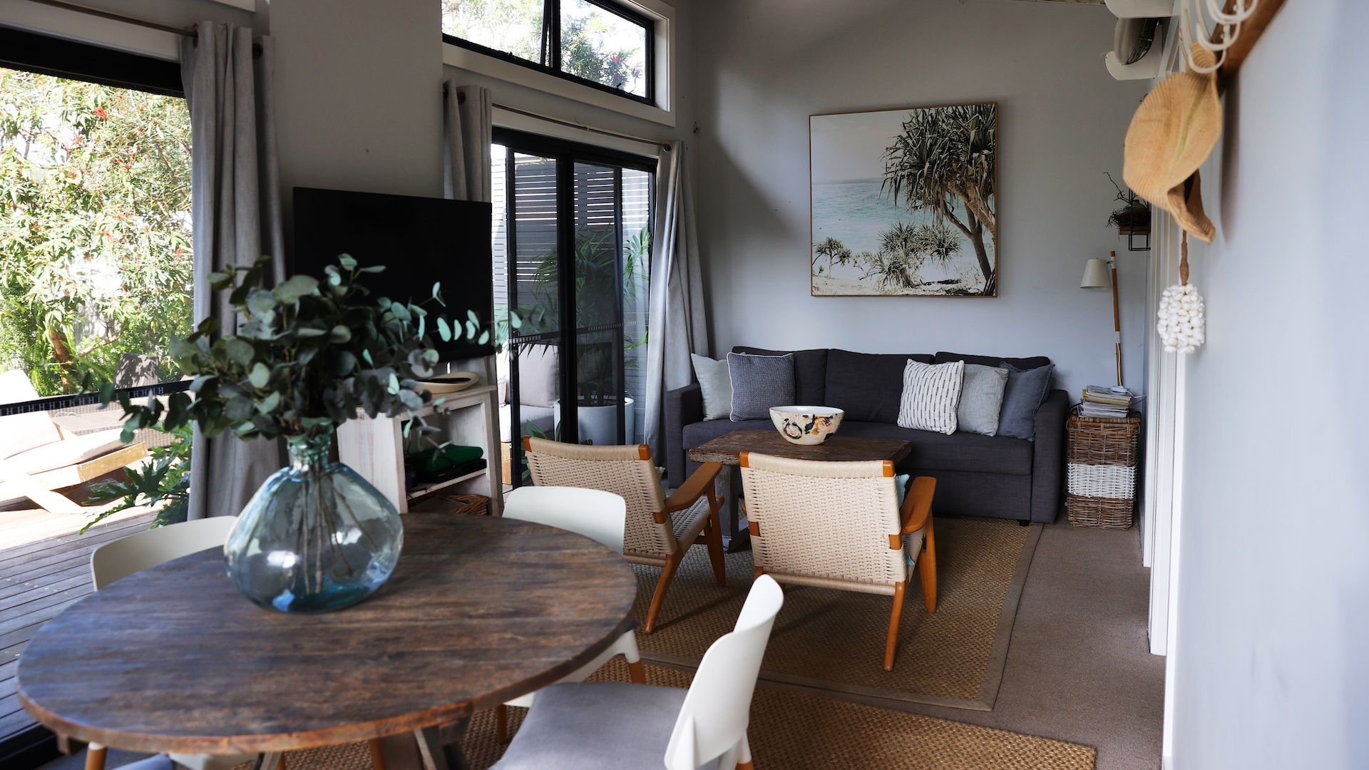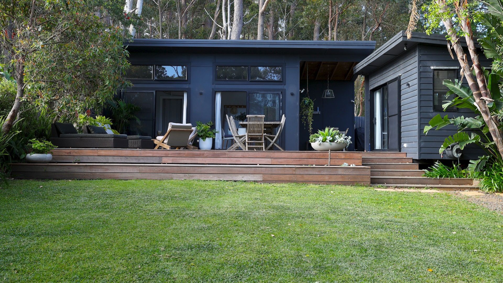 The Getaway Manyana is a cozy beach shack located in a lovely garden setting with a backdrop of gum trees.