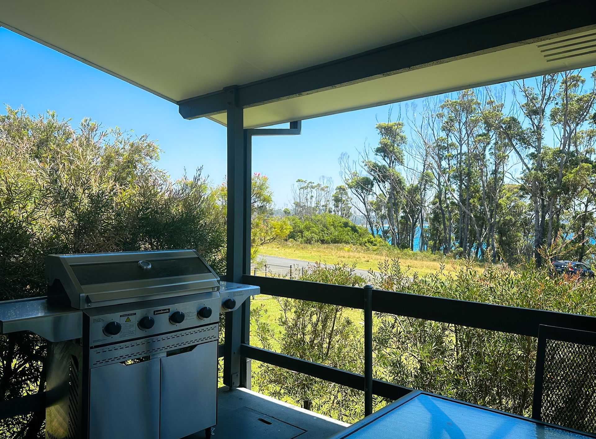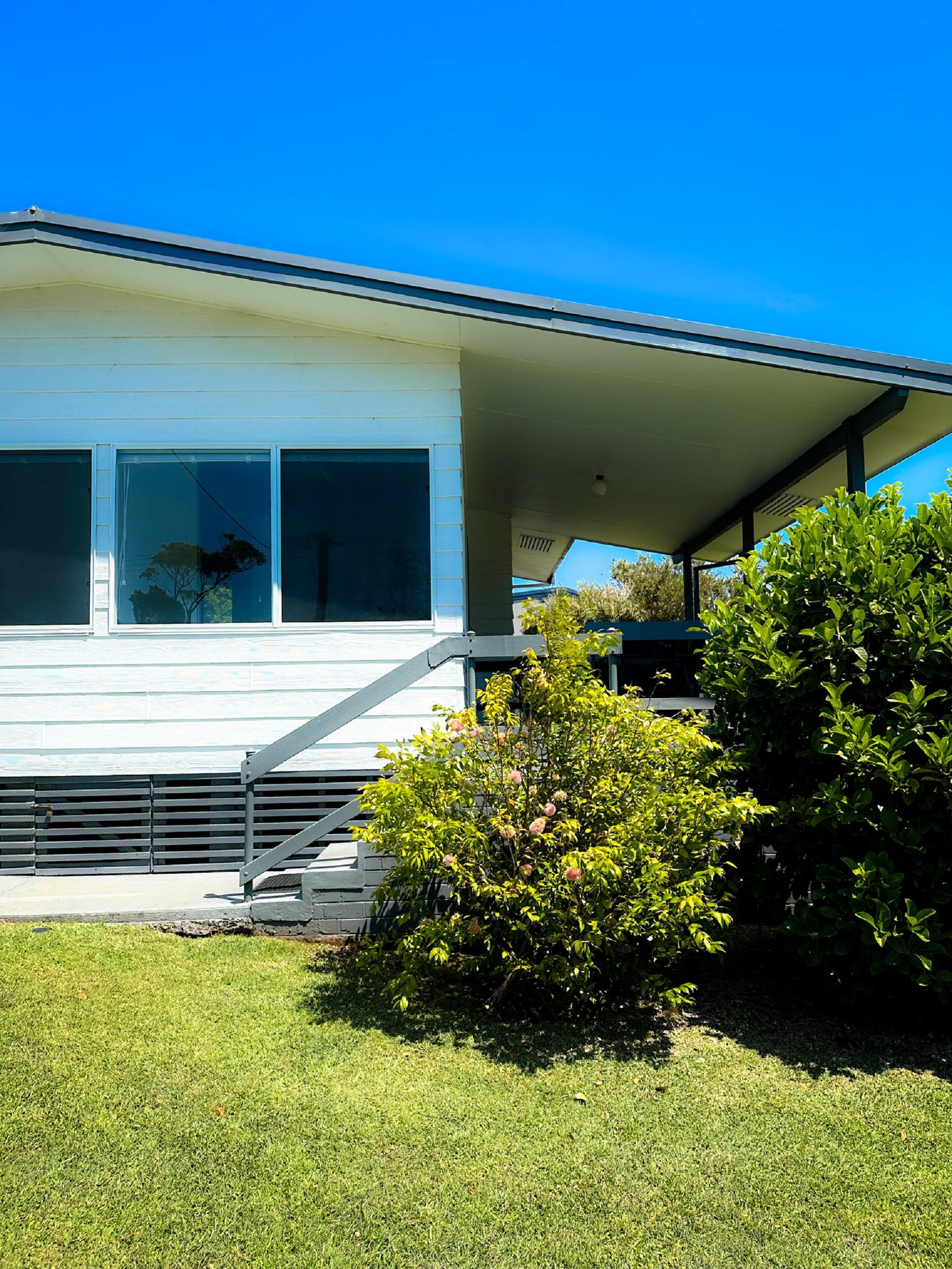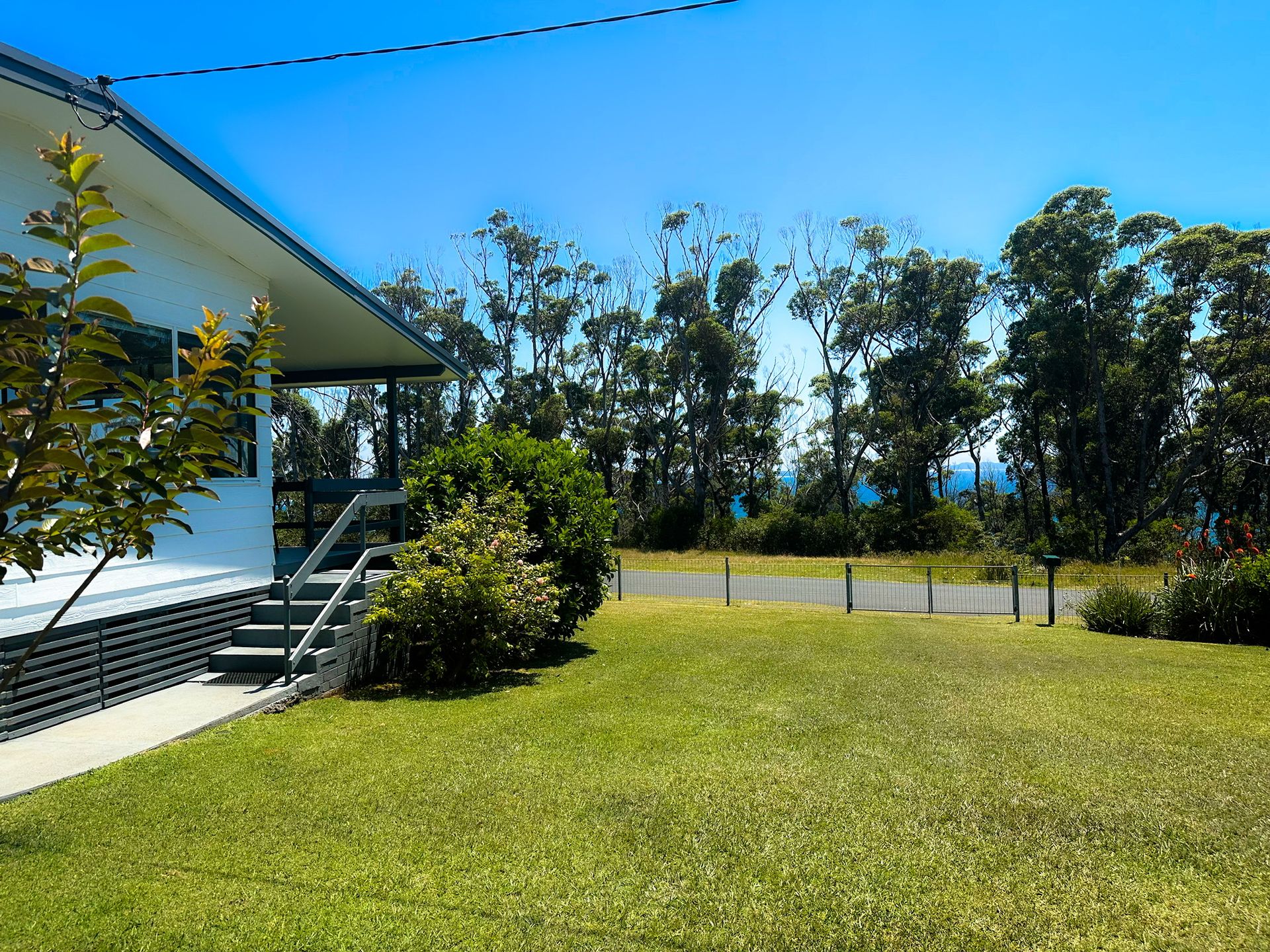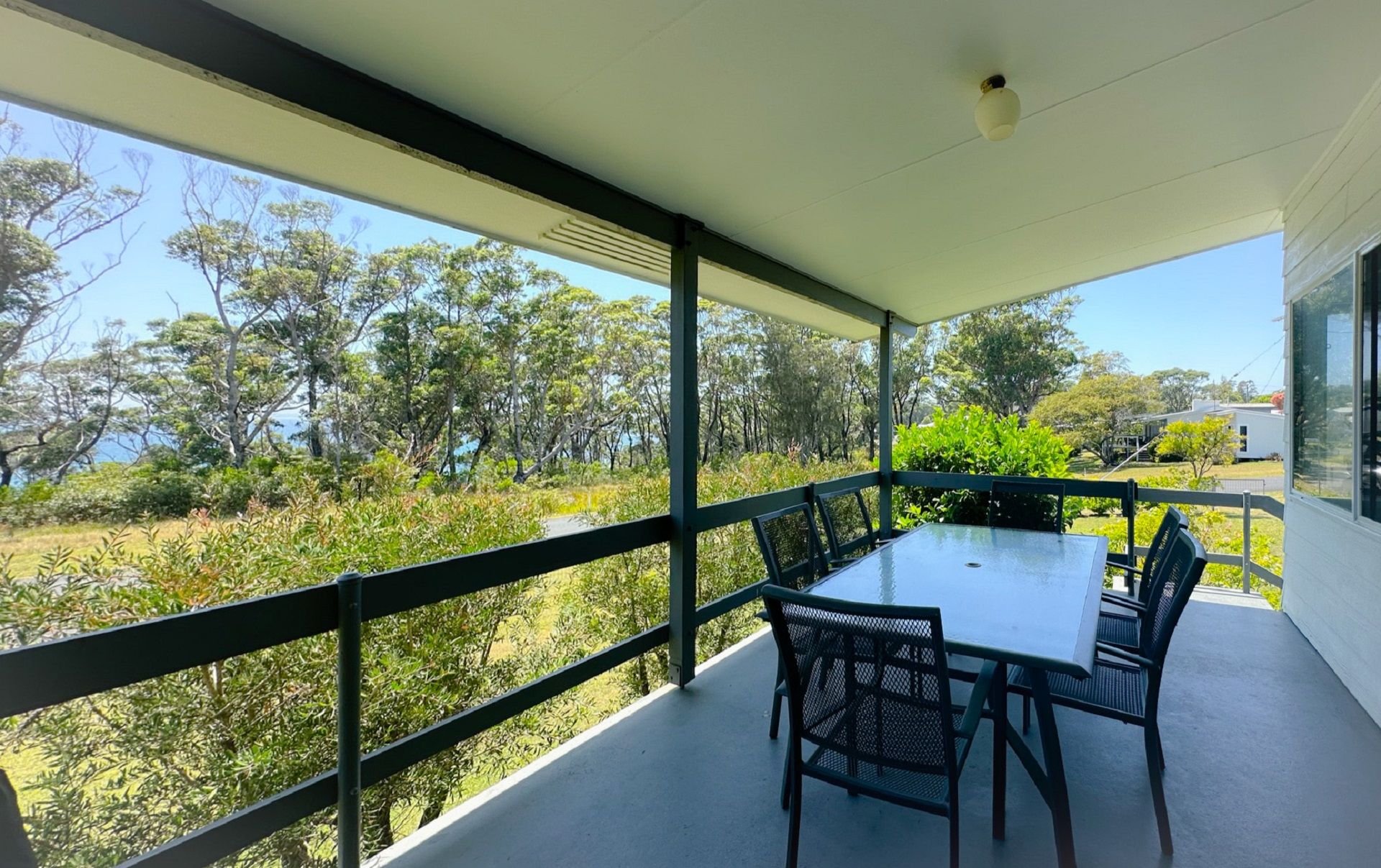 Relax on the undercover front deck and enjoy the ocean glimpses through the trees in the opposite waterfront reserve of washerwomans beach.