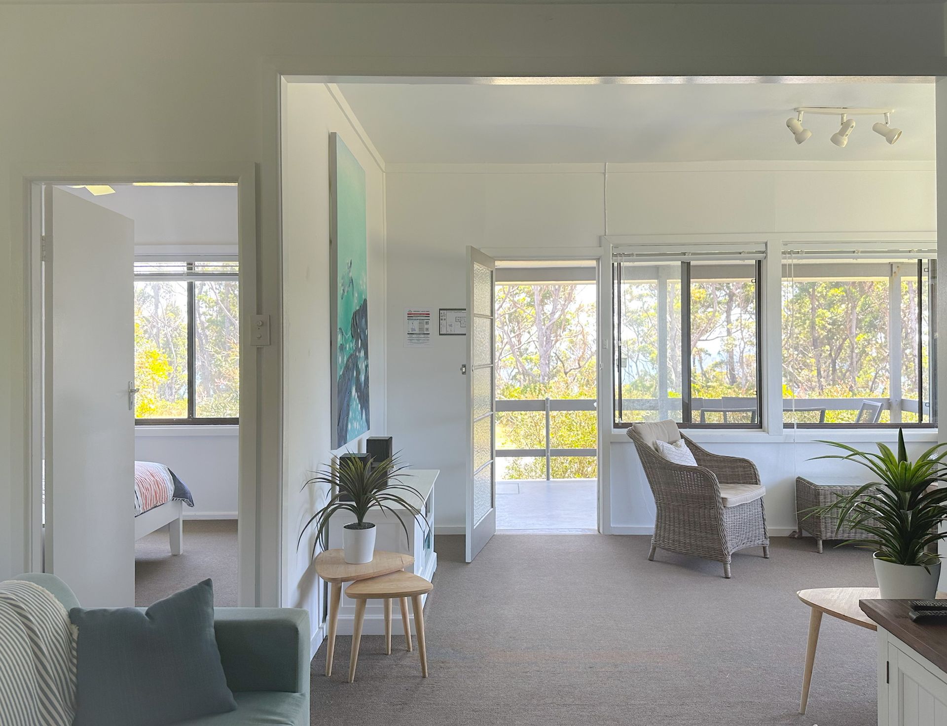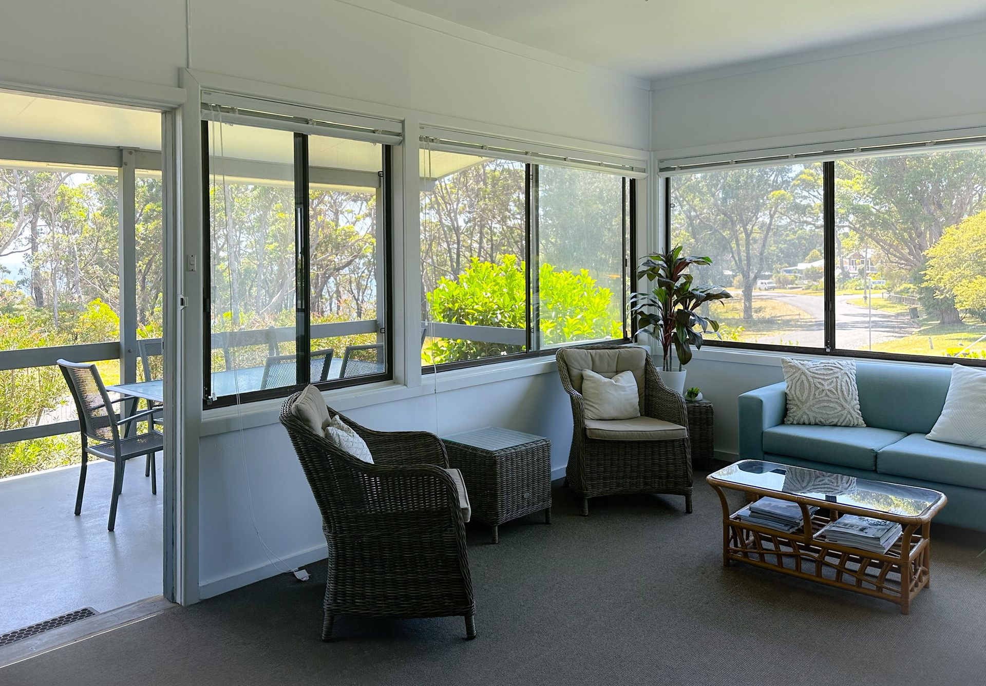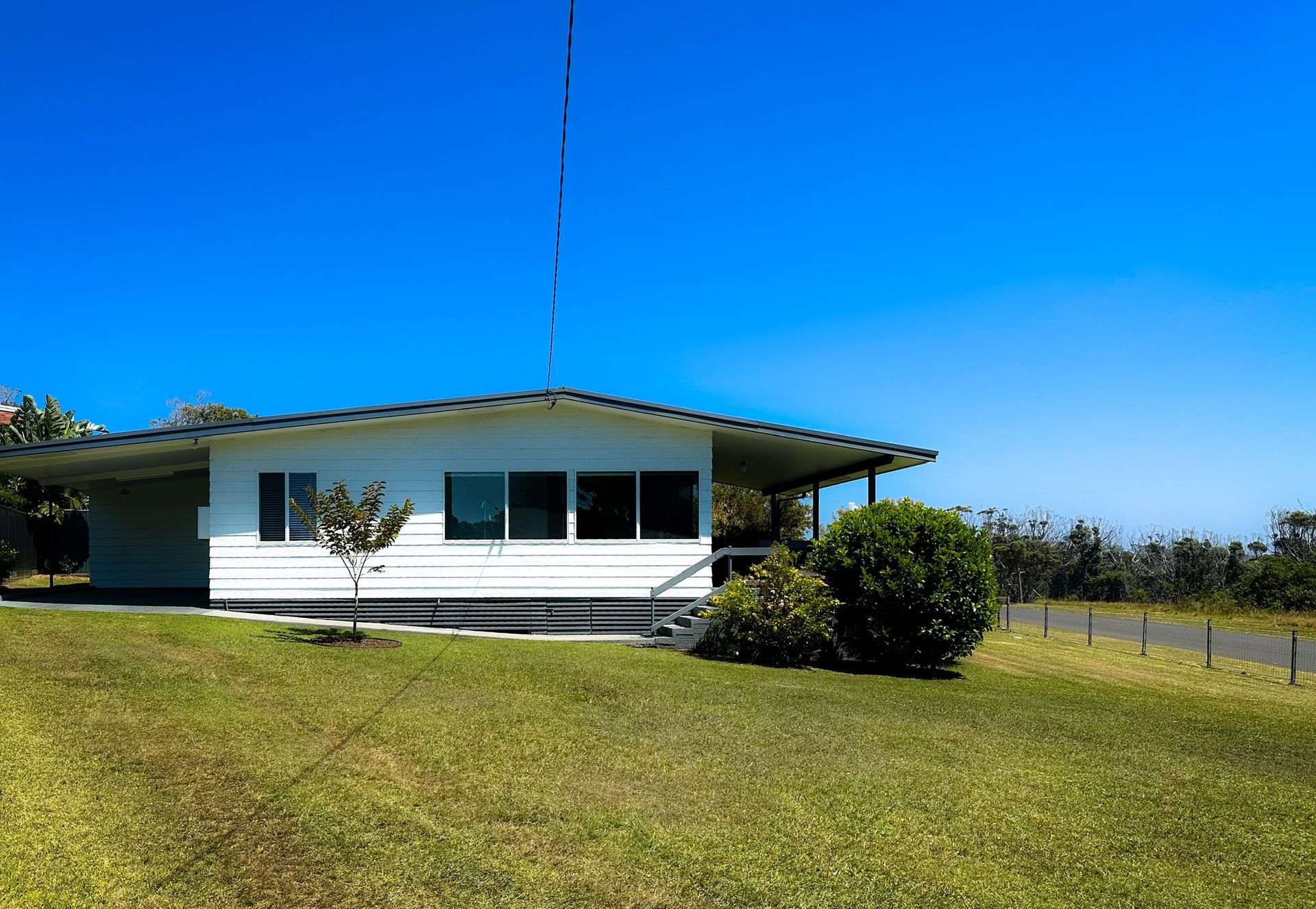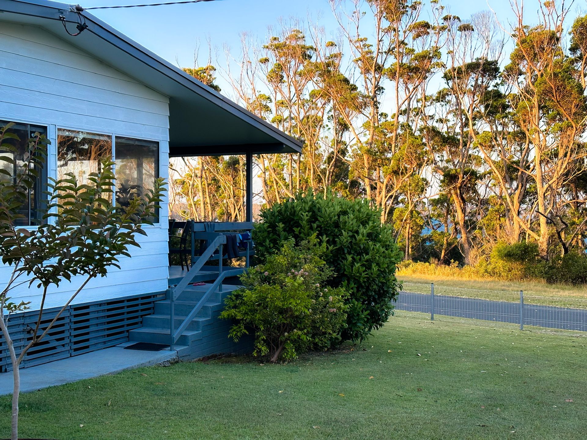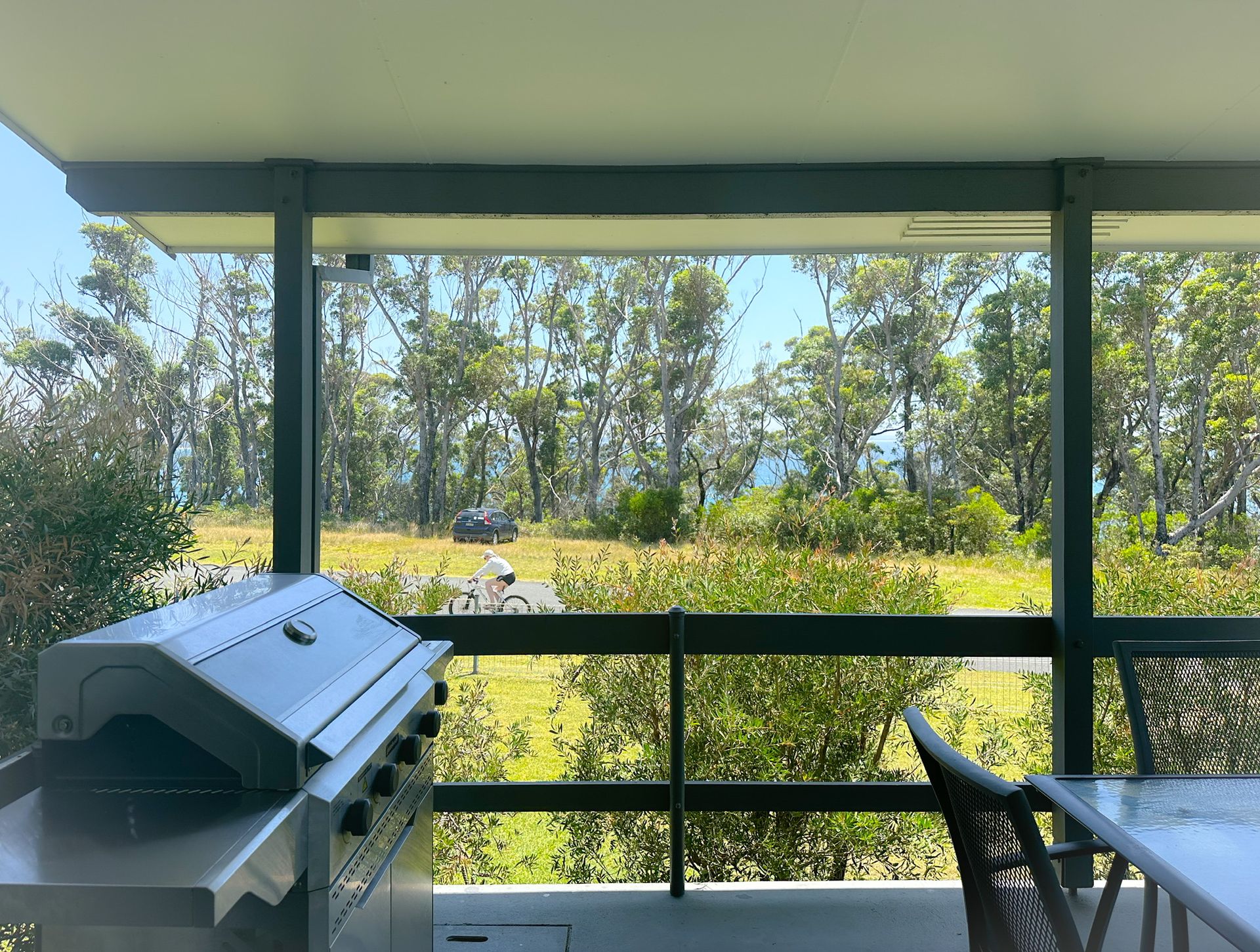 Relax on the undercover front deck and enjoy the ocean glimpses through the trees in the opposite waterfront reserve of washerwomans beach.