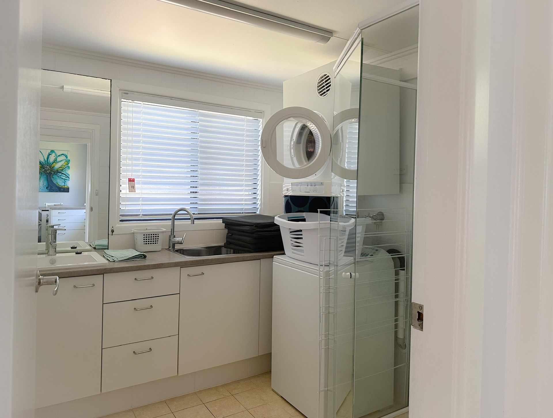 The house has two bathrooms and laundry facilities.